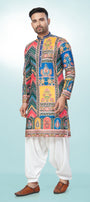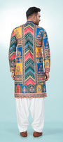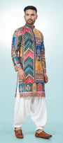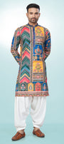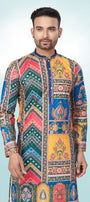 Step into the Spotlight with this Vibrant and comfortable Multi Coloured Kurta, Fusing traditional style with a bold, contemporary Print. Perfect for festive daytime events and cultural gathering. Abstract Print appears to on a Cotton Blend Base for comfort with a digital print and subtle sequence/embroidery work on the collar Area, which is typical for this style