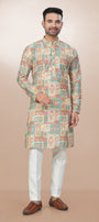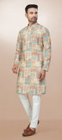 Artisan Patchwork Print Cotton Kurta for men - Beige / S / Cotton