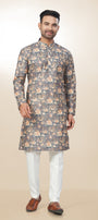 Artisanal Elephant Cotton Printed Kurta - Grey / Cotton / S