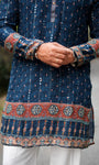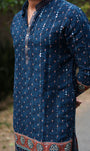 BLUSHING BLUE PAPER MIRROR WORK MID-LENGTH KURTA - Navy / S / Silk
