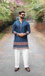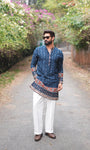 Tailored for the modern gentleman, this Blushing blue mid-kurta is crafted from a breathable cotton-silk blend with a soft inner lining for lasting comfort. The subtle woven accents add refined character, making it effortlessly sophisticated without trying too hard.