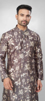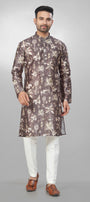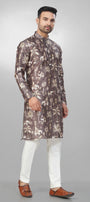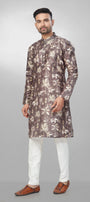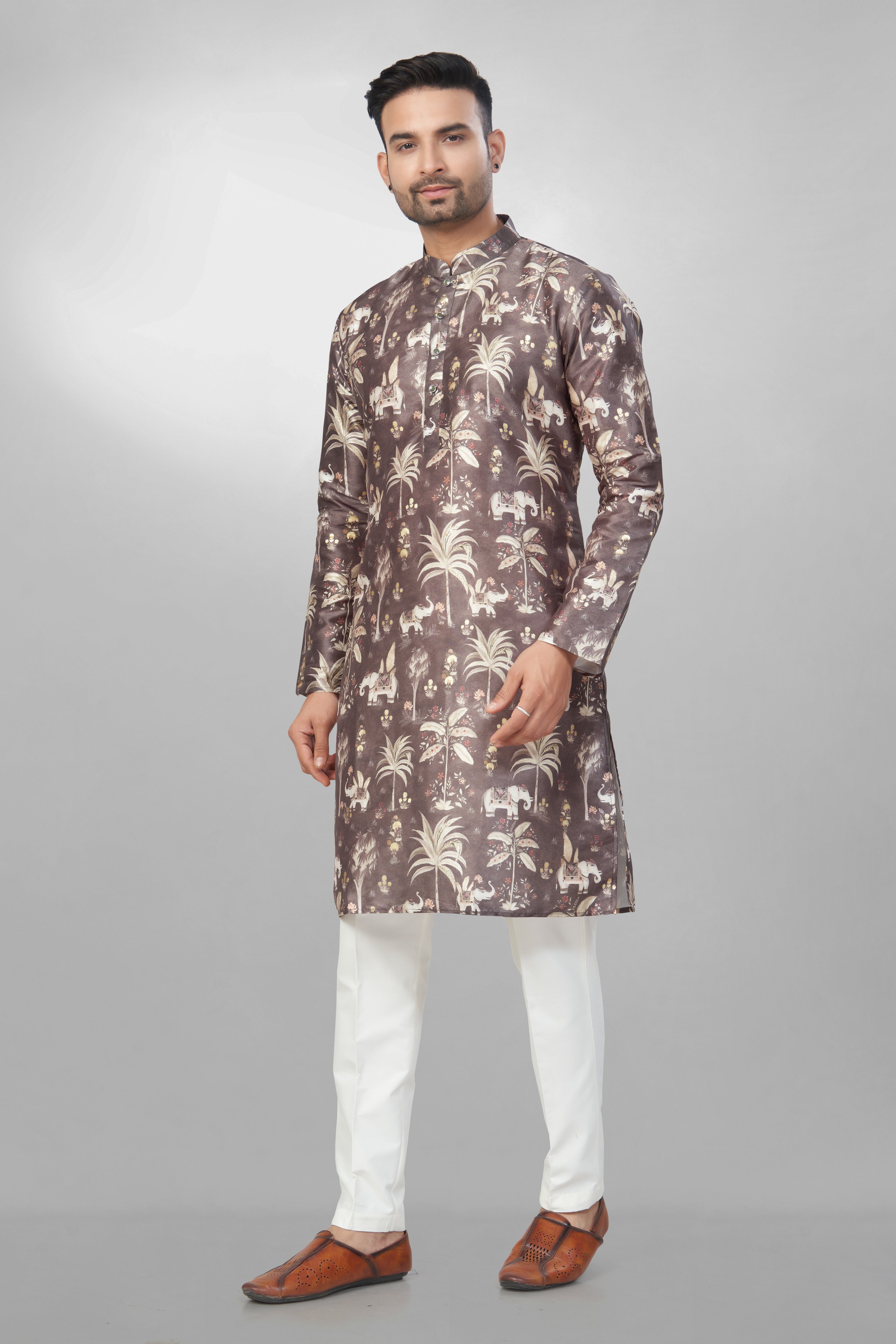 Classic Earthy Tone Silk Printed Kurta - S / Silk / Brown