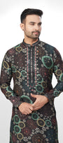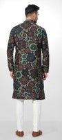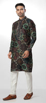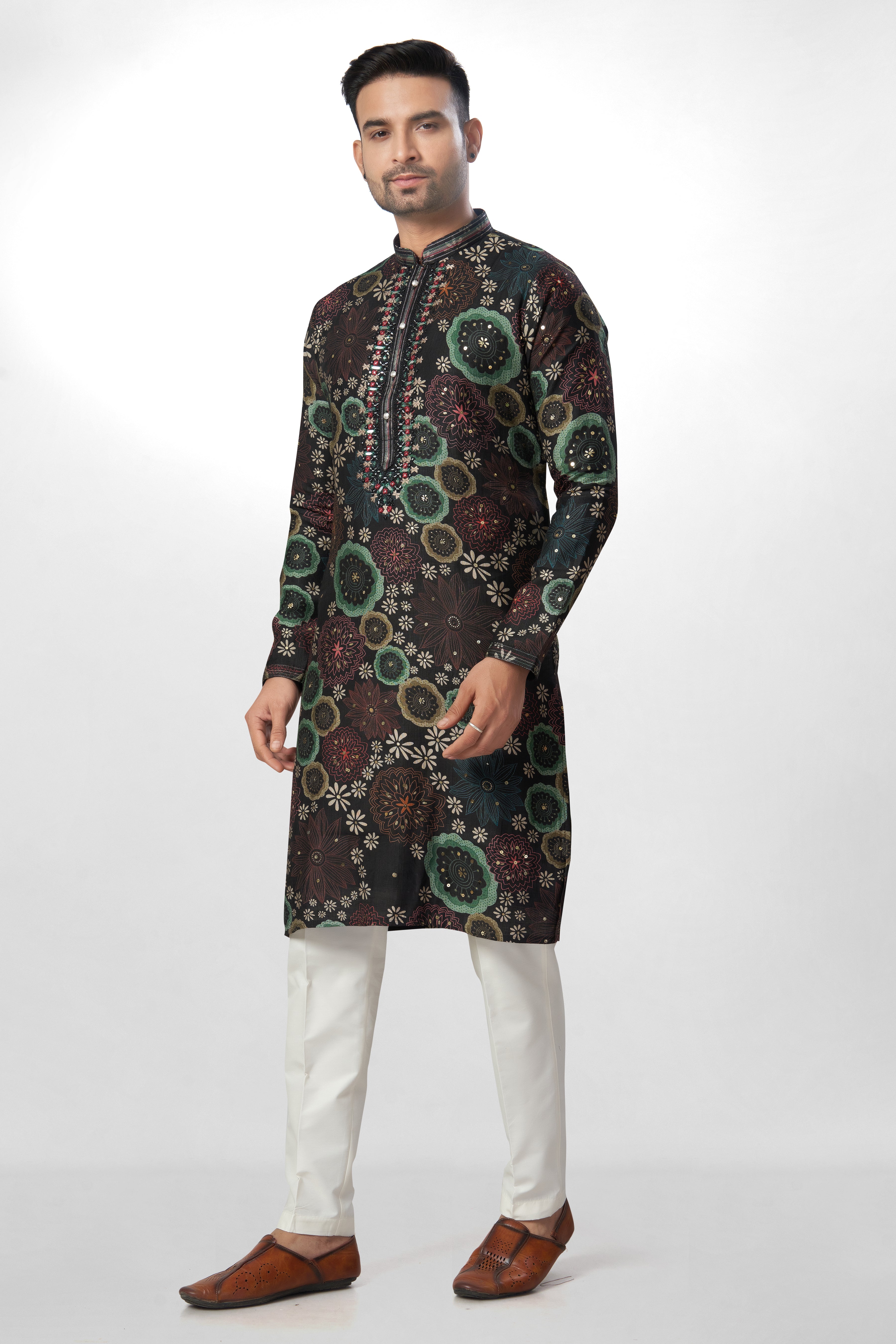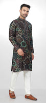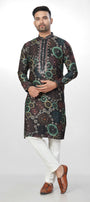 Dark Base Floral Print Embroidered Kurta for Men - Black / M / Silk
