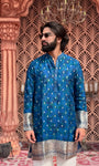 IMPERIAL BLUE BROCADE MID-LENGTH KURTA