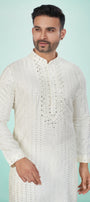 Ivory Glaze Mirror Work Kurta Set - White / S / Silk