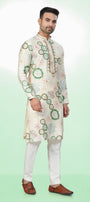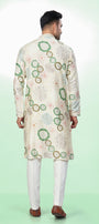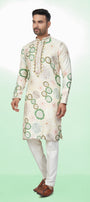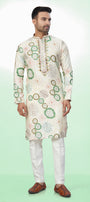 Light Base Floral Embroidered Kurta For Men - Ivory / Silk / M