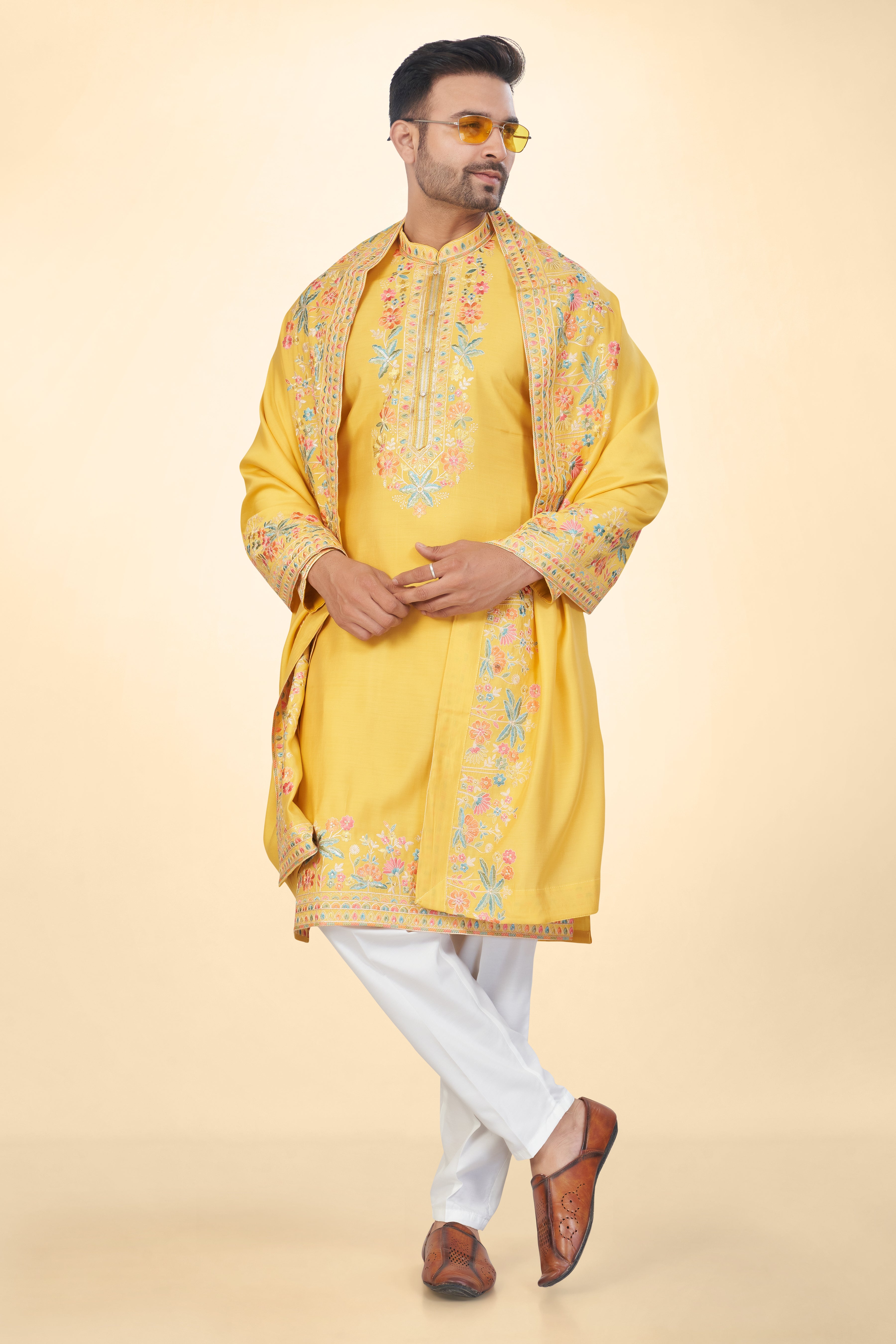 Marigold Yellow Kashmiri Embroidered Kurta Set with Dupatta