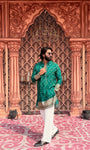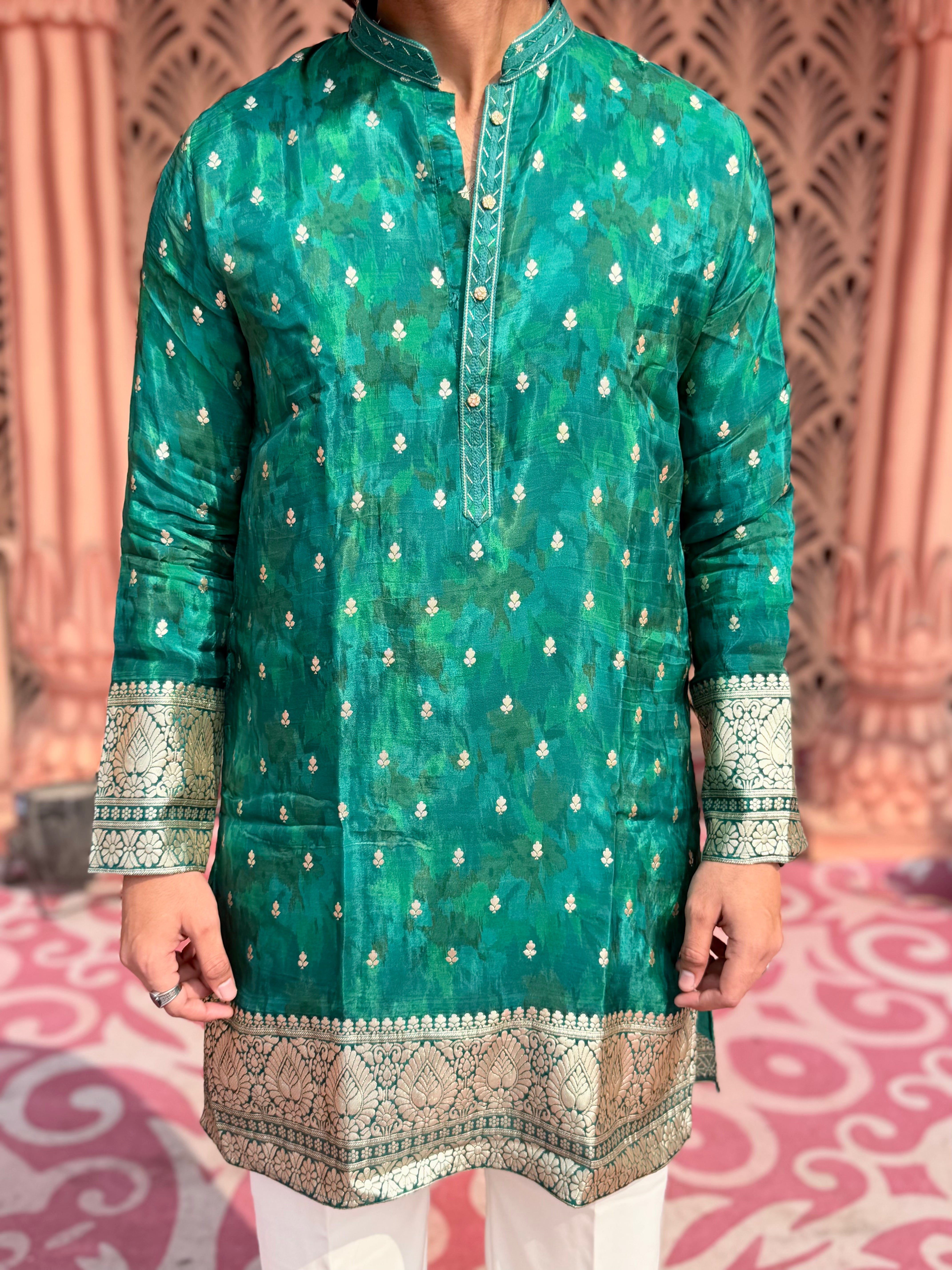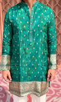 PEACOCK GREEN BROCADE MID-LENGTH KURTA