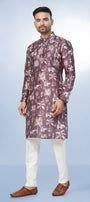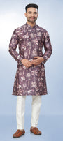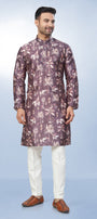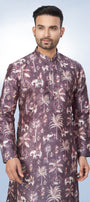 Classic Regal Plum Printed Silk Kurta - S / Wine / Silk