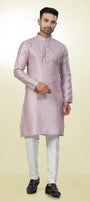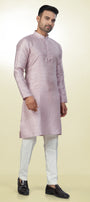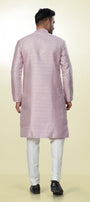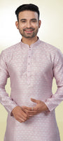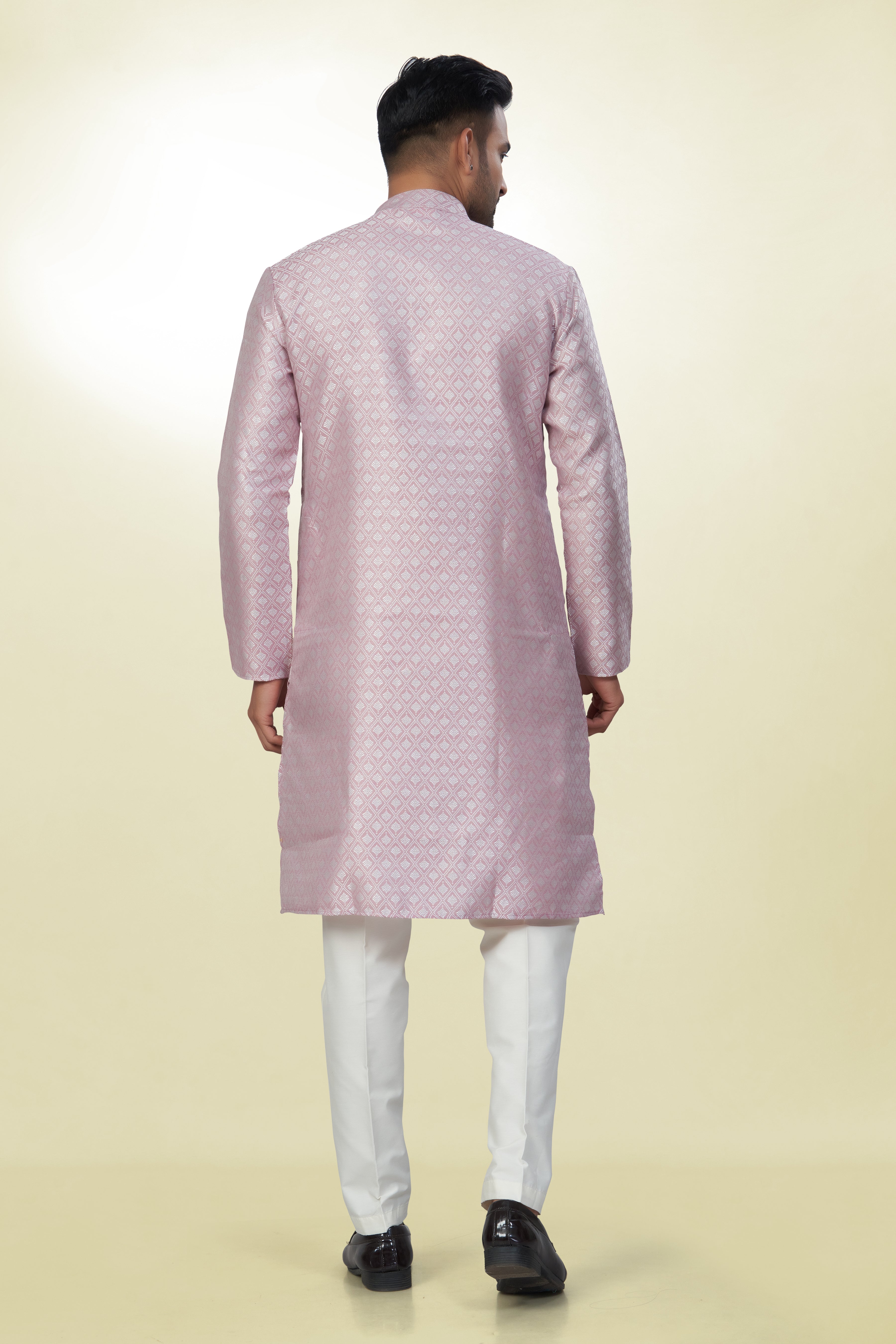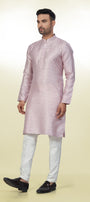 Step into the Spotlight with this Vibrant Soft Dusty Rose/Pale Pink Kurta, intricate geometric pattern (like a small check or diamond lattice) woven directly into the fabric. This tone-to-tone (self-design) work creates a rich texture that shimmers slightly as it catches the light, providing richness without heavy embroidery.