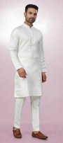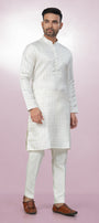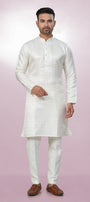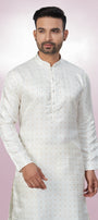 Self Design White Silk Kurta For Men | Silk/ Self- Woven Work