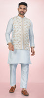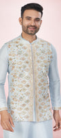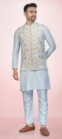 Step into the Spotlight with this Solid Sky Blue coloured jacket suit. A bright, modern and universally flattering stunning shade. Cotton silk blend with full cotton lining. Delicate Minimalist Bootis. The suit is adorned with sparse, finely woven or embroidered motifs spread across the body. This texture and traditional charm without being overpowering.